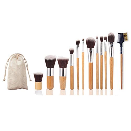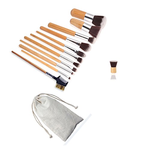 FantasyDay 11 Pcs Foundation Blending Blush Eye Face Powder Brush Makeup Brush Kit + 2 Beauty Cosmetics Sponge Blenders
