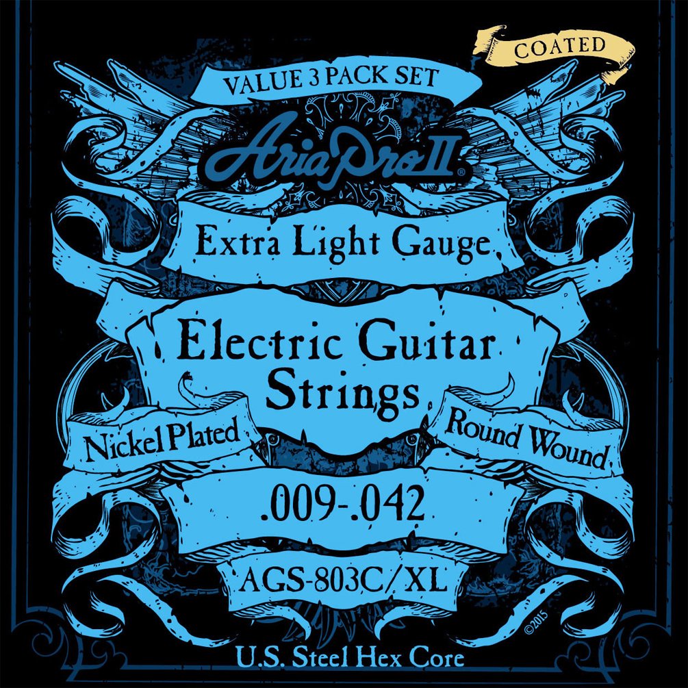 AriaproII Ariapuro II electric guitar for coating strings nickel Extra Light 3 set pack AGS-803C XL