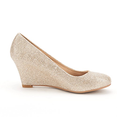 -. Title : DREAM PAIRS WEDGY Women's Elegant Almond Toe Mid Heel Wedge Pumps Slip On Shoes