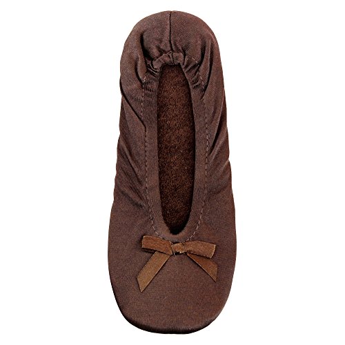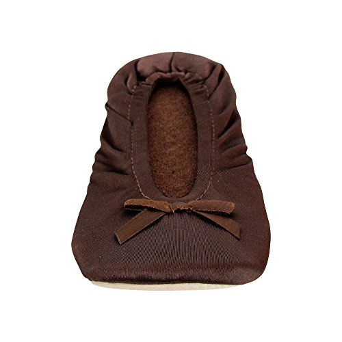 -. Binding : Apparel -. Brand : Cartoon Club -. Department : womens -. Feature : Ballet-style slipper in stretch satin material with bow design that will conform to your feet / Cotton terry lining for optimum comfort / Thick suede non-slip sole / Machine Washable / Imported -. ProductGroup : Shoes -. ProductTypeName : SHOES -. Title : Ladie's Satin Ballerina Slippers