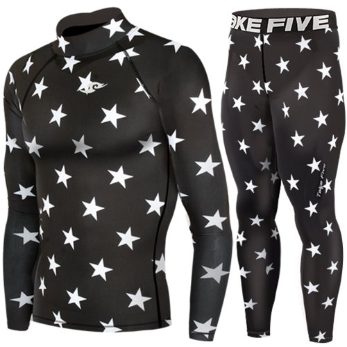-. Title : Skin Tight Compression Base Layer Under Shirt & Pants Black Star Pattern SET