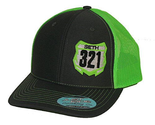 | (JUST RIDE)/Accessories/Hats/DIRECT FROM USA/JUST RIDE Number Plate Snapback Mesh Hat Custom Personalized Motocross Moto |