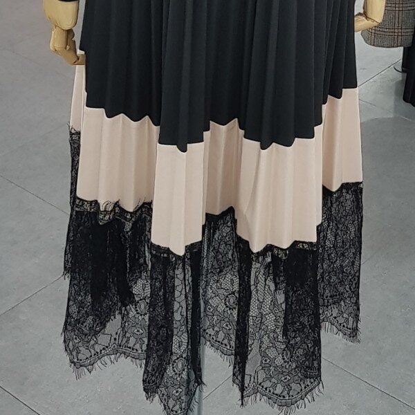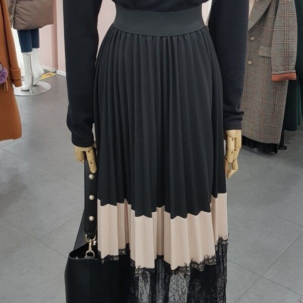 우아함을 더해줄 배색주름스커트 소개할께요~배색포인트가 더해져 고급스러움과 레이스 소재로 마무리되어 여성스러운 디테일을 더했습니다과하지 않은 라인으로 부담없이 다양한 이너에 매칭이 되어 하나쯤 소장하시면 좋은아이템입니다살짝 퍼지는 밑단이 걸을 때마다 매력적인 실루엣을 연출해줍니다롱한 길이감이 체형 커버에도 효과적이며 분위기있는 룩을 완성해줍니다색상 블랙사이즈 free총장 80cm제품의 소재특성 및 측정방법에 따라 1~2cm 오차가 날 수도 있으며, 모니터 사양에 따라 색상의 차이가 있을 수 있어요.) 기본 배송 기한은 2~5일 소요 됩니다. 매장에 없는 신상품은 7일정도 소요될 수 있는 점 참고해주세요. 발송 후 취소건은 반품 택배비를 부담하셔야합니다. 참고해주세요:)시스템상 교환이 어려우세요 교환을 원하실 경우 반품처리 후 재구매 부탁드려요.**배송지연 문자는 시스템상 기한을 여유있게 날짜를 정한 것으로 실제 배송은 기한보다 더 빨라질수 있으세요,, 항상 빠른 배송을 위해 노력하겠습니다**