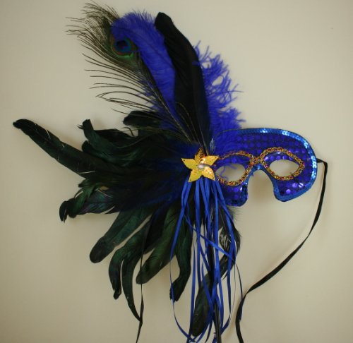 -. Title : Mardi Gras Masquerade Feather Costume Stick Mask or Table Centerpiece Decoration