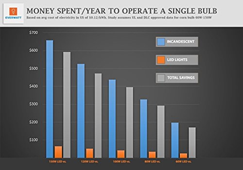 - BRIGHT LIGHT, BRIGHT SAVINGS - Corn light bulbs have universal applications and can save up to 81.6% on electricity consumption when compared to the HPS/HID/HALIDE/INCANDESCENT/CFL lights and fixtures they are replacing. Designed for better cooling with larger size aluminum heat sink and built in fan to ensure long life performance.