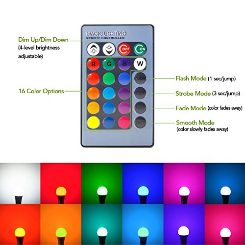 - RGBW Color changing LED bulb with 24 key IR remote controller(included). Very easy to use and provide colorful and bright illumination