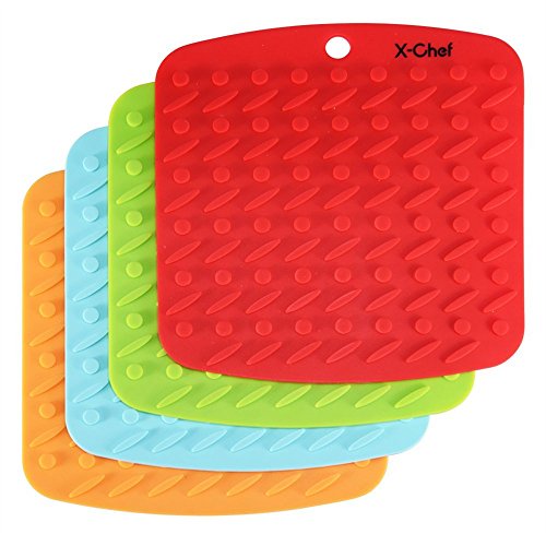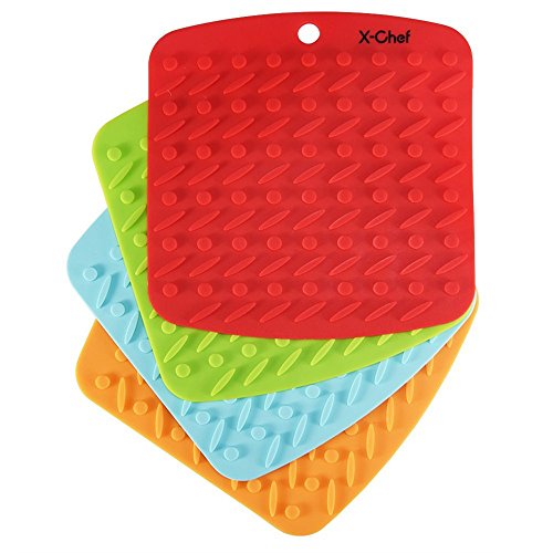 X-Chef Silicone Kitchen Trivet Mat Pot Holder Hot Pads Insulated Non Slip Flexible Durable Dishwasher Safe Heat Resistant Set of 4