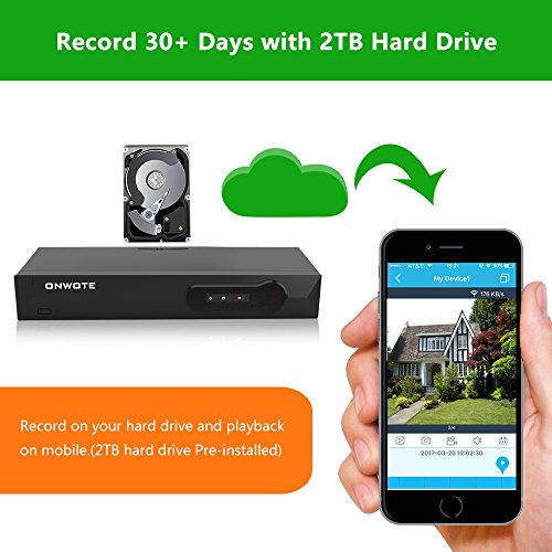 【Storage Capacity】-- 2TB Hard Drive allows for 24/7 continuous recording up to one week, record 30+ days with motion detection recording.