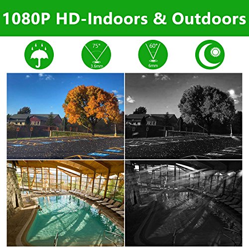 【Crystal Clear Videos Day & Night, Indoors & Outdoors】-- See in stunning clarity and sharper details with 2.0 Megapixel (1920 x 1080) cameras. With 6 LED arrays, IR night vision up to 80ft. Employing IP 66 weatherproof aluminum housing material, cameras can be used indoors and outdoors.