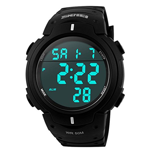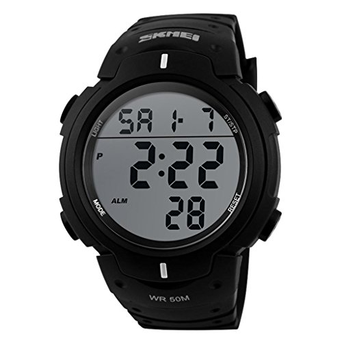 -. Title : SKMEI Men's Simple Design Digital LCD Screen Black Rubber Band Sport Wrist Watch