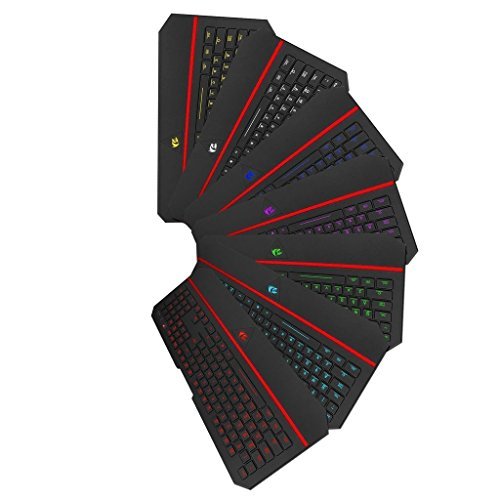 -. Feature : NEW VERSION with improved keys, 7 switchable backlight colors. 4 LED brightness levels / Adjustable pulsing rate LED lights. 104 standard keys / 19 non-conflict keys ; 12 multimedia keys ; adjustable input speeds / Interchangeable "↑ ← ↓ →" keys and "WASD" keys / 7 switchable backlight colors. 4 LED brightness levels; laser engraved keycaps