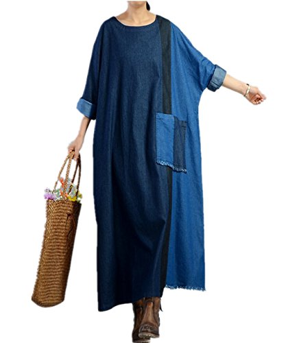 -. Title : Yesno JP1 レディース ルース デニム カフンドレス 100% コットン ロングスリーブ ビッグポケット