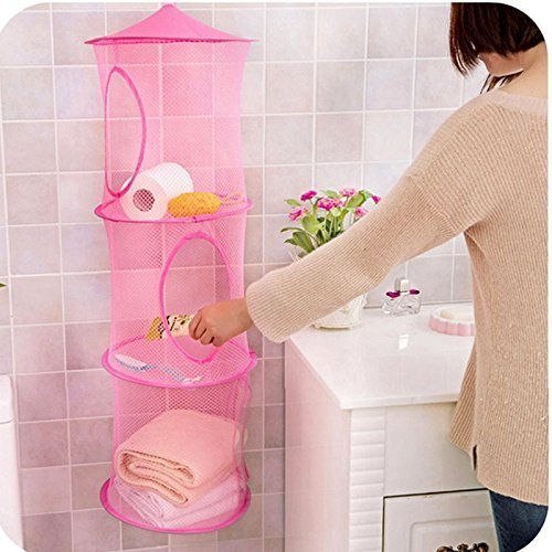 OrangeTag Hanging Mesh Space Saver Bags Organizer 3 Compartments Toy Storage Basket for Kids Room organization mesh hanging bag 2 Pcs Set , Random Colors