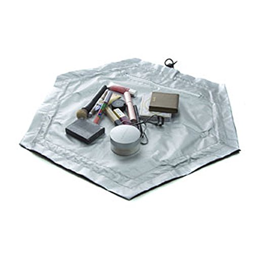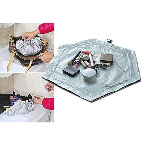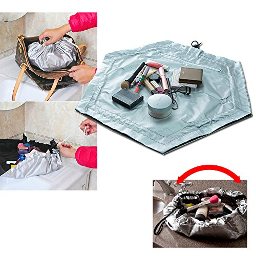 - Turns into a clutch to easily fit into your purse, backpack or luggage. Lightweight and conforms to the shape your belongings inside. Opens up flat and Becomes a perfect mat and Workspace. Then just pull the drawstring to close it up in 2 seconds back into a clutch.