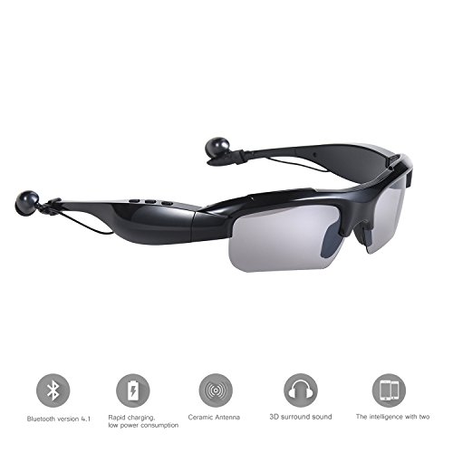 -. Feature : 1, This Bluetooth headset & sunglasses is a perfect combination of practicability and fashion. It can make you enjoy the freedom of wireless listening and hands-free talk. / 2, Bluetooth V4.1 music sunglasses, total 41g, light weight, comfortable to wear, easy to take along. / 3, 3D stero, hi-fi earphones. / 4, Ceramic antenna, stable and low consumption. / 5, Support self photo taking.