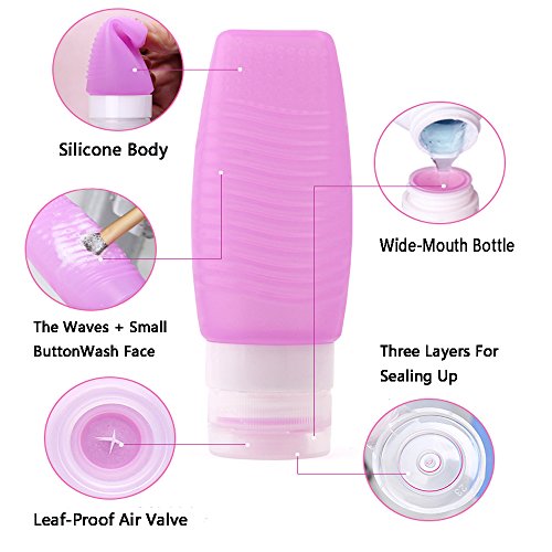 - LEAK PROOF DESIGN SILICONE BOTTLES: The travel liquid containers has 3 layers and the valve of cap has a silicone layer to make the squeeze bottles won't leak out. Good sealing and the opening is very tight , the liquid would not Leaks or spills everywhere when you are in traveling or gym.