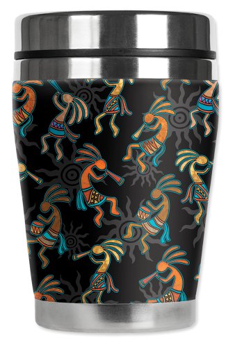 Mugzie Kokopelli "Mini" Travel Mug with Insulated Wetsuit Cover, 12 oz, Black