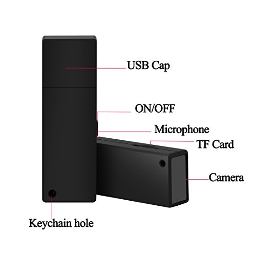 -. Feature : MOST HIDDEN CAMERA: A normal U Disk builds in surveillance cameras, which can help to prevent from chief, record evidences and test cheating. There aren't any camera lens holes on the surface, which is difference from market's hidden camera with obvious lens. / 1080P SPY CAMERA: With imported 1080P HD lens and stereo microphone, Jiusion camera can clearly capture every moment you need in secret. / HIGH QUALITY IMAGE: On standby mode, short press to take photo (2592 x 1944.jpg) or long press 1 second to record video with audio(1920 x 1080@30fps.avi). / BIG CAPACITY MEMORY AND BATTERY: Built in 200mAh battery and 16GB memory, camera can record about 50mins after single charged. 32GB can save more than half day. / PLUG AND RECORD: Pled on wall charger or PC USB port when camera is on mode, it will keep recording and save whole day video.