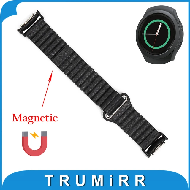 | [해외]정품 가죽 시계 밴드 + 어댑터 samsung gear s2 SM-R720/R730 손목 스트랩 자기 버클 벨트 팔찌 블랙 브라운 |