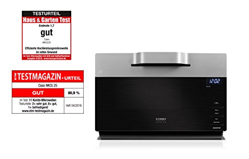 Caso CASO IMCG25 Design Mikrowelle mit Invertertechnologie im WAVE Design, Inverter Mikrowelle 900 Watt / Grill 2050 Watt / Heissluft 2050 Watt (110-200°C)/ 25 L Volumen / fur energiespa
