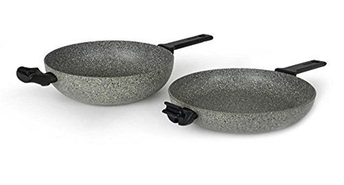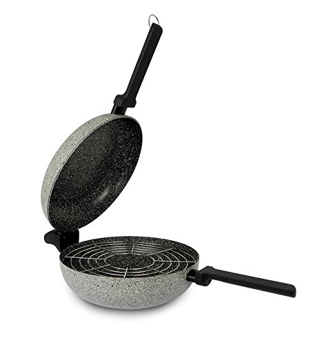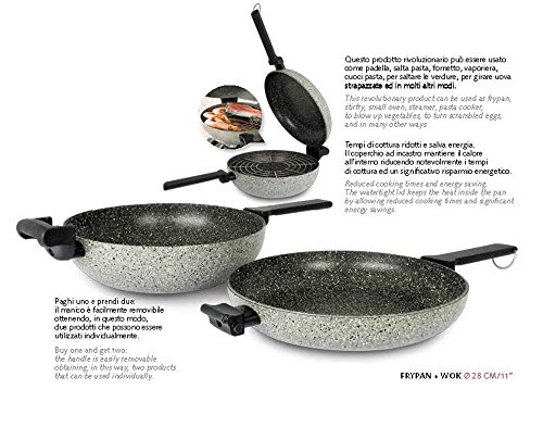 A set consisting of a frying pan + a wok, which can be used either individually as traditional cooking tools or joined together to form ROCYK TWINS! The pan is transformed into a lid that, thanks to special couplings, forms with the wok a single body capable of retaining the heat inside, reducing considerably the cooking time.