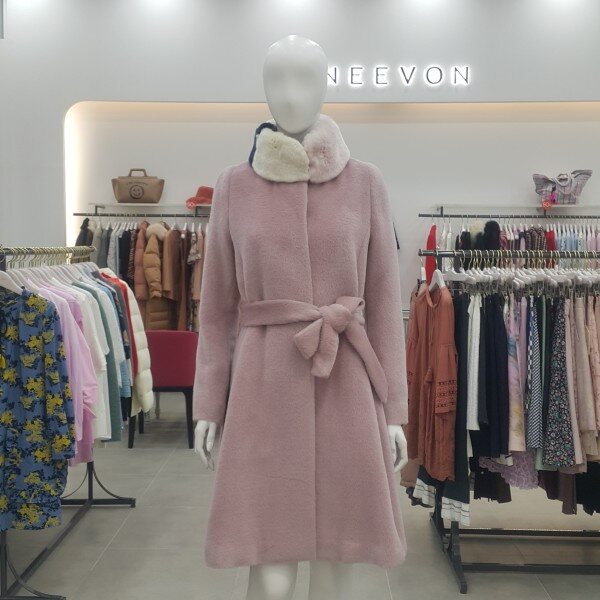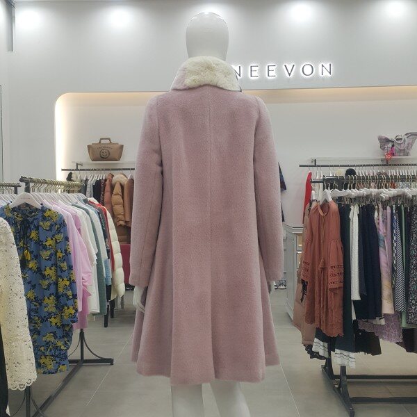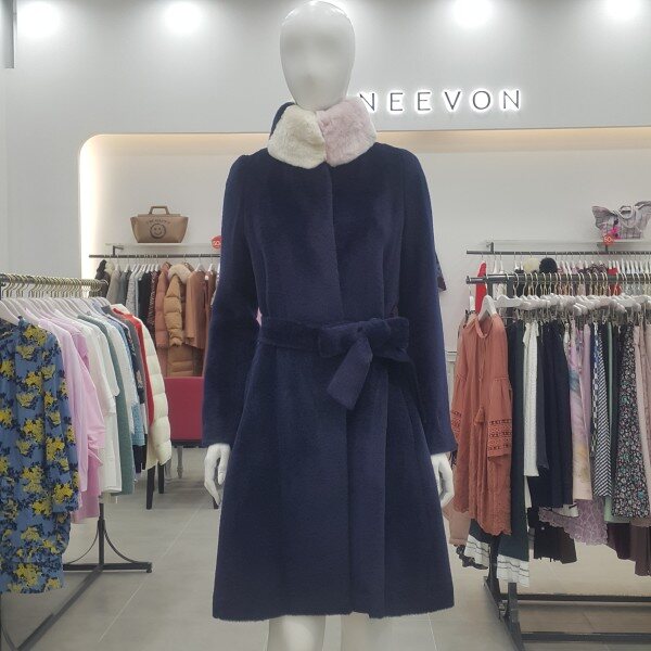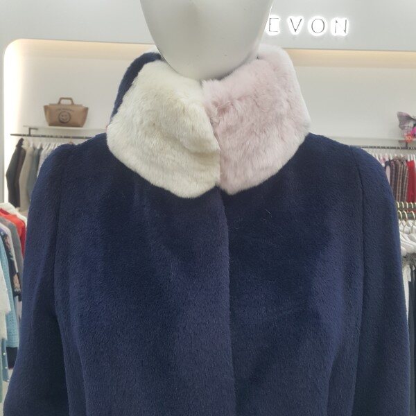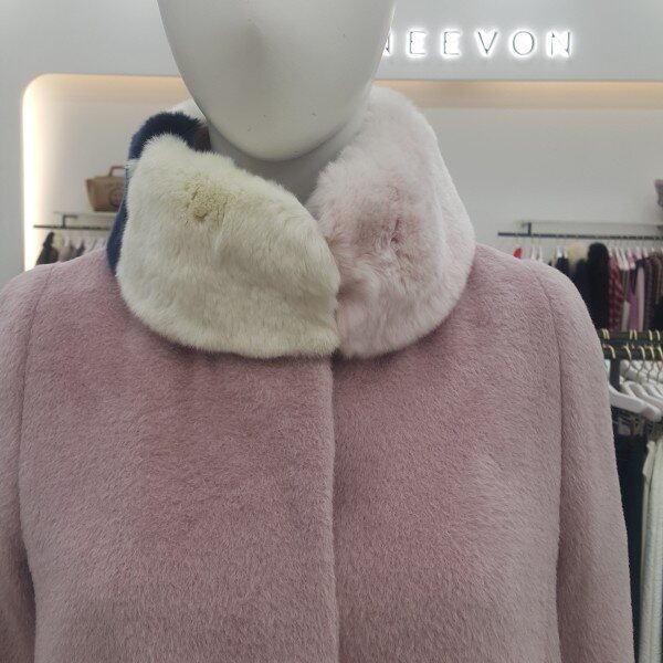 A라인으로 떨어지는 실루엣의 알파카코트입니다.탈부착 가능한 퍼에 컬러배색 포인트를 주었습니다~