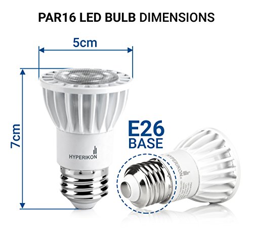 Introducing the Hyperikon® PAR16 Series The Hyperikon PAR16 is perfect for tracking lighting in retail displays, spot lighting and many other applications. The narrow flood beam angle of 38° makes it perfect for general displaying lighting applications setting the perfect mood and atmosphere. These bulbs are a suitable replacement for your 35W or 50W halogen bulb - featuring dimming capabilities from 100-10%. Dimensions In terms of dimensions a PAR16 is exactly like our MR16. However, the PAR16 has a E26 (medium screw base) and our MR16 has a GU5.3 (bi-pin) base or GU10 (twist base). With a promised lifetime of 50,000 hours and the Hyperikon 5 year unlimited warranty, you will have maintenance-free and long-lasting LED bulbs for many years to come. · Save 85% on your electricity bill! · Dimmable from 100-10% · Available in Bright White (4000K), Soft White (3000K) and Warm Glow (2700K) · Preferred choice for retail displays and track lighting · Instant-On · Shatter-resistant · COB-diode design for enhanced lumen output 0 |