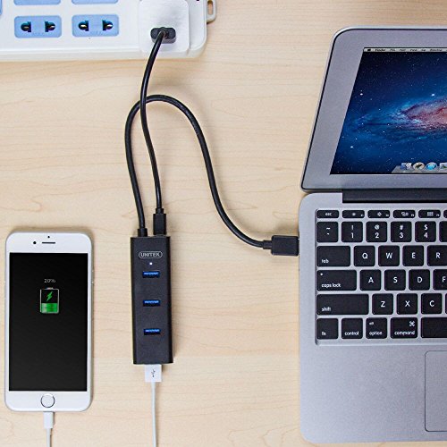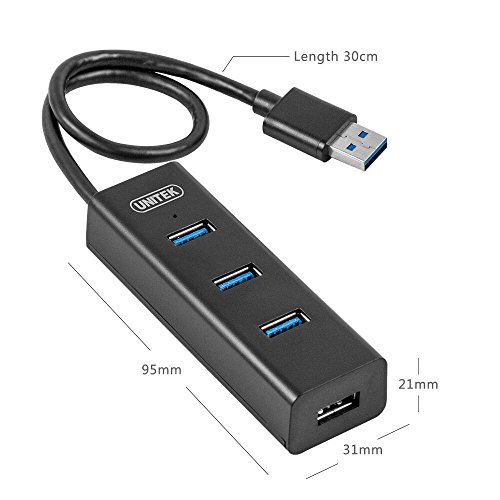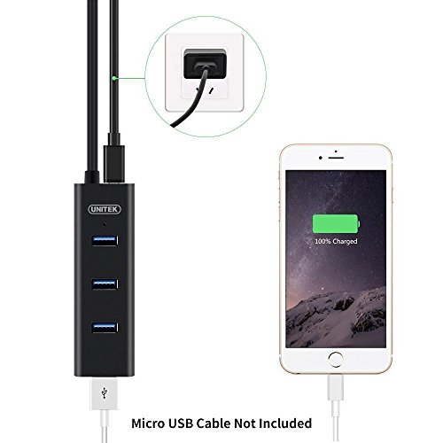 UNITEK Portable USB 3.0 4-Port High Speed Hub with BC 1.2 Charging with 5V 1.2A and Built-in USB 3.0 Cable LED for iMac, MacBook, MacBook Pro, MacBook Air, Mac Mini, Chrombook, Surface Pro