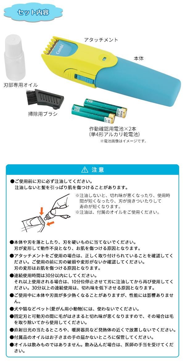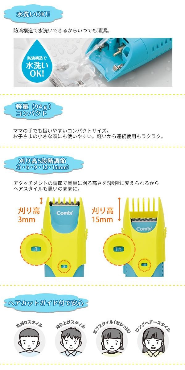 | 「洗えるバリカン」はアタッチメントをスライドさせるだけで刈る高さを5段階に簡単に変えられるので、いろいろなヘアスタイルが楽しめます。ママでも使いやすい軽量・コンパクトサイズに加え、ヘアカットガイド付きなので、お子さまの頭にも使いやすいはじめてのバリカンとして安心です。 |