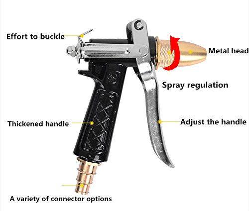-. Brand : Yamde -. EAN : 0723610225471 -. Feature : HEAVY DUTY AND ROBUST - Made of solid metal with baked enamel finish. This nozzle is designed to last. Robust metal construction with a baked enamel coating, this sprayer not only looks polished but is robust and much stronger than plastic water nozzles. The baked enamel gives it a strong durable finish that looks attractive and prevents rust. / For Every Watering Need. Weather you need the high pressure jet to clean the hard surface or the soft shower to wash the dog, / ERGONOMIC SOFT RUBBER COMFORT GRIP - Means comfortable spraying. Your Hand Won't Tire. The soft rubber coating makes this nozzle very comfortable in your hand so you can water for long periods of time. / One common problem with low quality nozzles is that they significantly reduce your water pressure. This results in a pitiful spray pattern rendering the nozzle virtually useless for many watering tasks. This heavy duty nozzle has flow control adjustment. Choose from a high pressure jet to a soft delicate shower. / ★★★★★ 100% CUSTOMER SATISFACTION GUARANTEE - Order with confidence! Backed By the Trusted Yamde 100% Customer Satisfaction Guarantee! Our customer service record is unmatched! -. Label : Yamde -. Manufacturer : Yamde -. ProductGroup : Lawn & Patio -. ProductTypeName : OUTDOOR_LIVING -. Publisher : Yamde -. Studio : Yamde -. Title : Yamde Hose Nozzle / Hand Sprayer - High Pressure - p.i.s.t.o.l Grip Front Trigger - Flow Control Setting Knob - Suitable for Car Wash, Cleaning, Watering Lawn and Garden - Ideal for Washing Dogs & Pets -. UPC : 723610225471