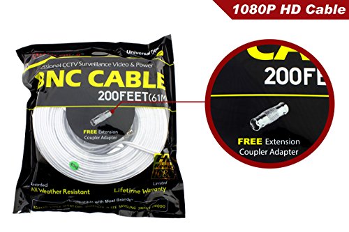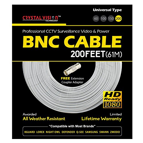 Crystal Vision Premium 1080P HD BNC CCTV Surveillance Security Camera Combo Cable Premade Siamese W/ Coupler for Samsung, Lorex, Swann, Q-See, Defender, Amcrest, Zosi, Kguard, etc, 200'