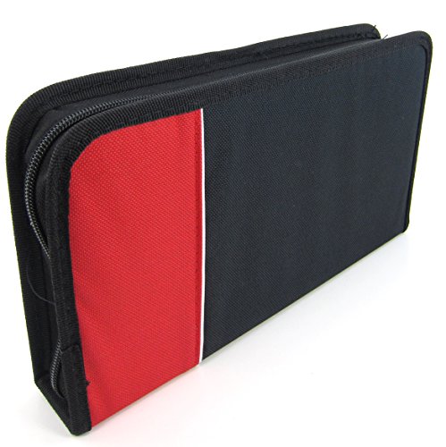 -. Binding : Electronics -. Brand : Elitexion -. Color : Red -. EAN : 0701948563496 -. Feature : Holds 96 CD or DVD / Perfect for all your media discs / Protects your media / Easy to flip pages and secure wih zipper / Space saving and a great way to organize your collection -. Label : Elitexion -. Manufacturer : Elitexion -. PackageQuantity : 1 -. ProductGroup : CE -. ProductTypeName : MEDIA_STORAGE -. Publisher : Elitexion -. Studio : Elitexion -. Title : Elitexion 96 Capacity CD DVD Blu-Ray Media Folder Wallet Carrying Case - Red -. UPC : 701948563496