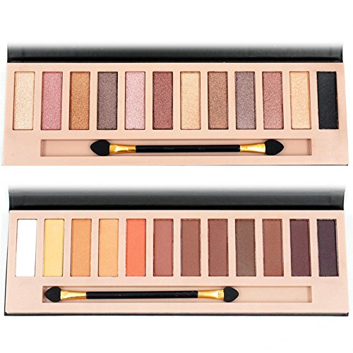 2pcs Nude Eyeshadow Palette 12 Color Naked Matte Shimmer Glitter Pigment Waterproof Natural Eye Shadow Pallete Professional Cosmetic Makeup Kit (A+B)