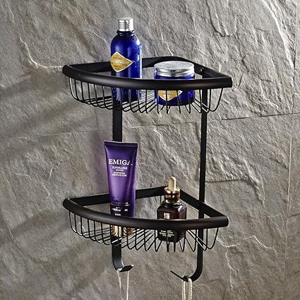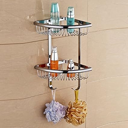 [Product Information]- Solod Brass Double Set Wire Shower Caddy with Hooks