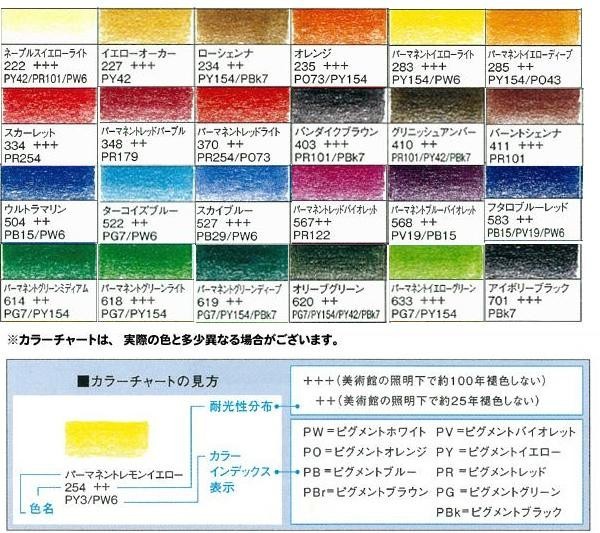 | セット内容 | 24色セット 【セット配色】 222・227・234・235・283・285 334・348・370・403・410・411 504・522・527・567・568・583 614・618・619・620・633・701 |