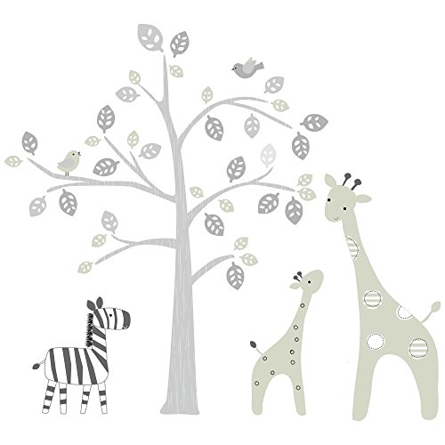 -. Feature : A lovely oversized tree in gray and sand decorate the nursery walls along with our stylized giraffes and zebra. / The easy-on, easy-off wall appliques come in a set of 4 sheets. / Peel & stick, wipe clean