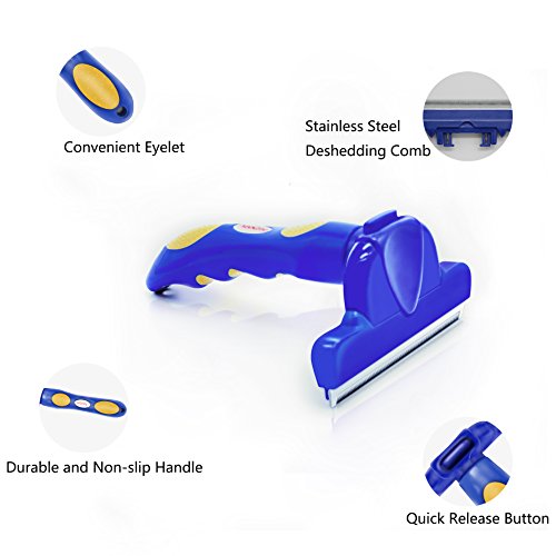 REDUCES SHEDDING BY UP TO 90% AND SAVES YOUR TIME: Remove up to 90% of shedding fur, undercoat and dead hair from your pets of all sizes. Works perfectly with big dogs such as Husky, Golden Retriever, German Shepherd, Labrador or smaller pets like puppy hamsters, Persian cats and rabbits. This deshedding brush is guaranteed to reduce shedding better than any grooming tools, brush rake or comb.