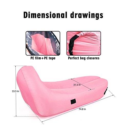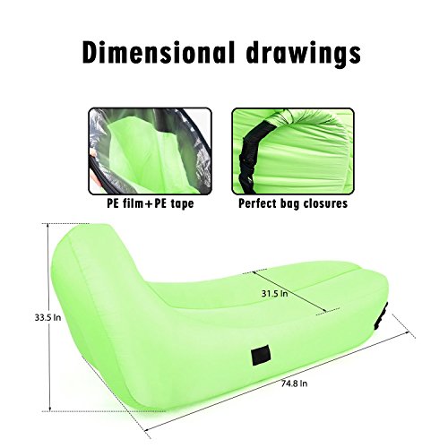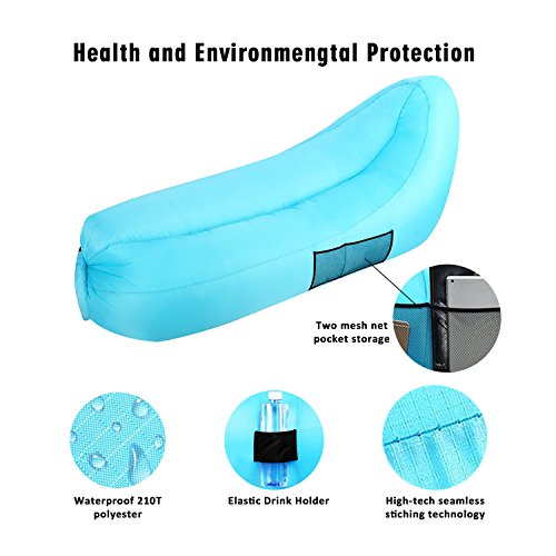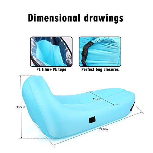 Whether you are on camping or wandering on the beach, or wandering around the festival, you need to sit down and be able to calm down at these times. Inflatable Lounger is the best choice! Product parameters: Material: 210T polyester fabric Waterproof airtight PE film Color: Blue Product categories: Sleeping Bag Style: Inflatable Weight: 2.6 lbs Maximum load: 660 lbs No air flat: 96.5x23.6 Inch How to inflate: 1. Open the side of the air chair side. Put the air chair into the air while carrying out a side step, fast on the wind about 15 feet, and then close the pocket during operation. Do not stop running the bag quickly to close the mouth to absorb the air. Repeat the previous steps to inflate the other. 2. With the air in the bag, start rolling the closed end for 3-5 times until the air is compressed and tightened. 3. Grasp the mouth, bend until the clips are caught together, fasten the clip. Suggest new users to search for video descriptions on YouTube and try to use our recliners with multiple patience. Maybe it takes some time for you to master it, but you'll finish it in a few minutes. Enjoy it outdoors: Take all your family and enjoy the time outdoors. Our Sleeping Air Bag is a very good for you. 1. You can lay it down on the ground,swimming pool or grass as blanket. 2. It can be your chair so that you don't have to sit down on the ground or grass. 3. It can be your bed to enjoy a nap outside with nature. High Quality: 1. Material waterproof outer layer, waterproof inner layer. Let you float in the water. 2. The use of lightweight and durable polyester fabric material. 3. High-quality non-slip materials. Very tough puncture resistance. Warm Tips: 1.Keep it away from fires, hard and any sharp objects. 2.Please don't jump on it to ensure its long lifetime. 0 |