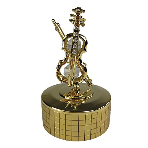 Violin 24k Gold Plated Wind Up Music Box with Swarovski Crystals
