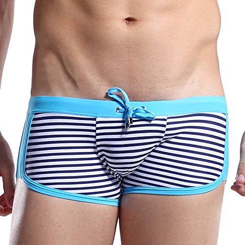 -. Title : Men's Boxer trunks low waist swim trunks men ,XL,Blue