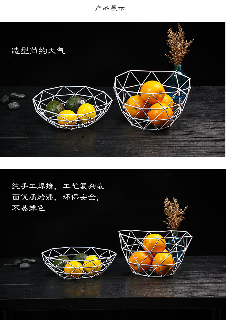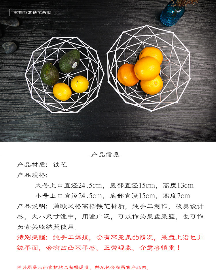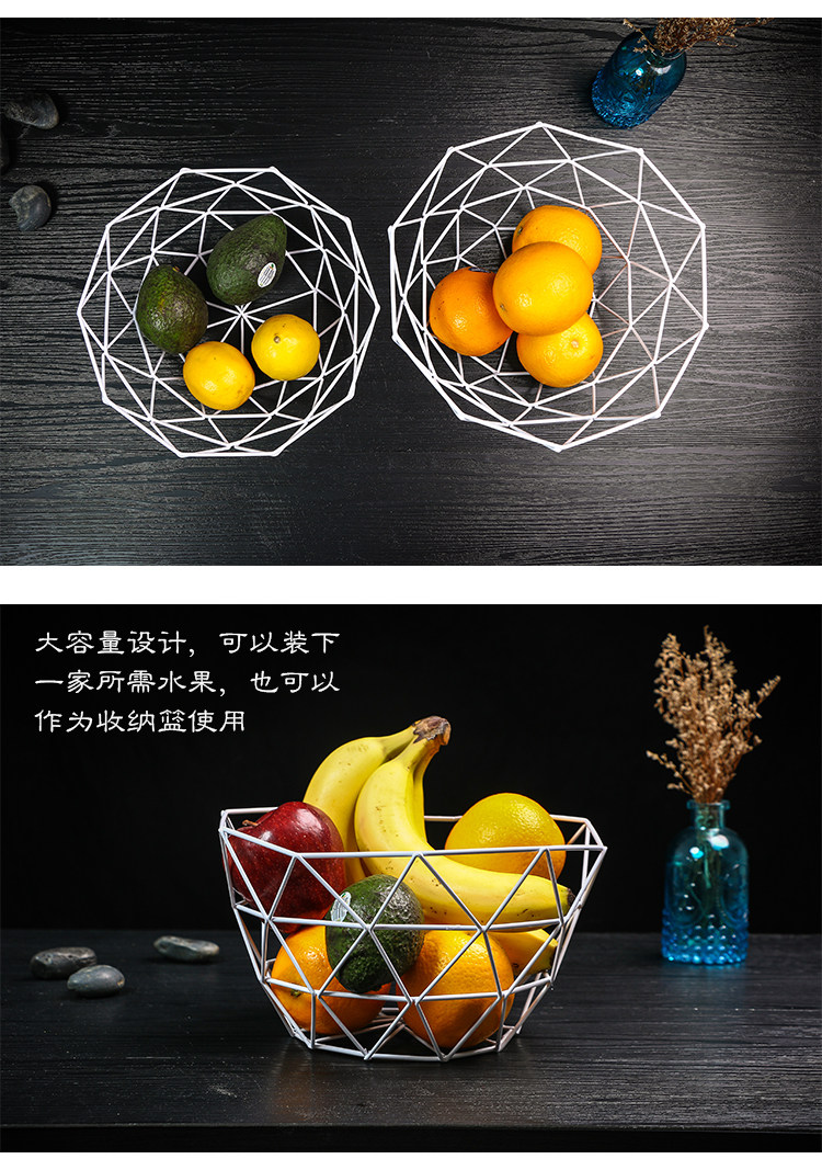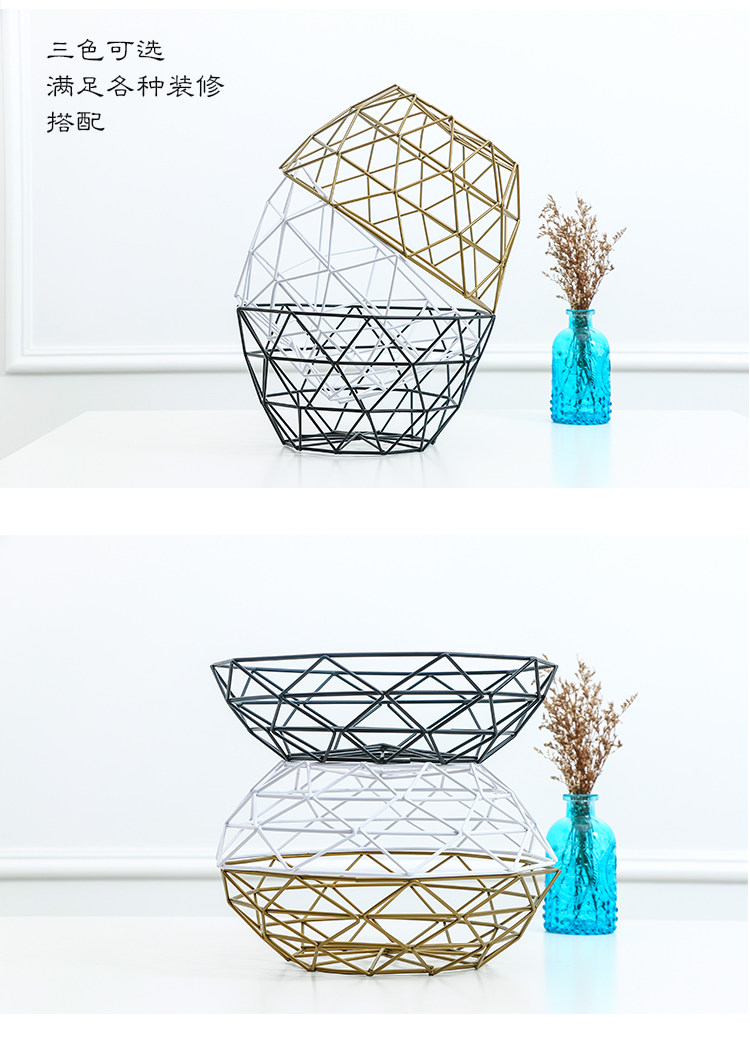北欧式简约创意客厅家用现代铁艺收纳篮水果篮水果盘零食收纳筐