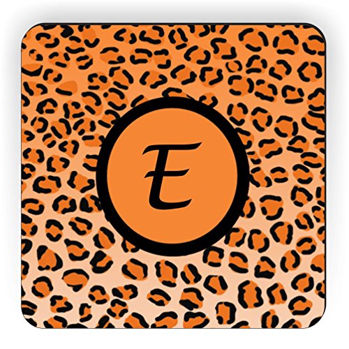 Rikki Knight Letter "E" Initial Orange Leopard Print Monogrammed Design Square Fridge Magnet