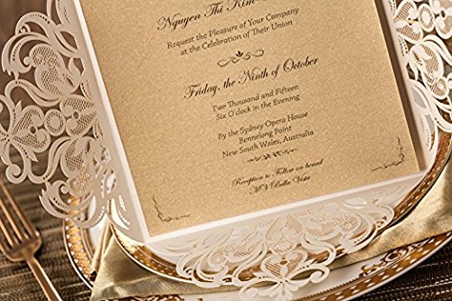 COLOR: Beige pocket with gold BLANK pearly insert(totally blank), white envelope(inadhesive) as well as adhesive seal/sticker