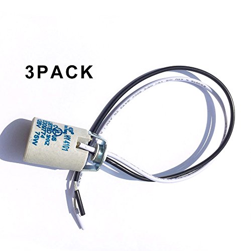 FINELED E12 Mini-Candelabra Screw ceramic lampholder socket,with 10 inch lead wires (3PACK)
