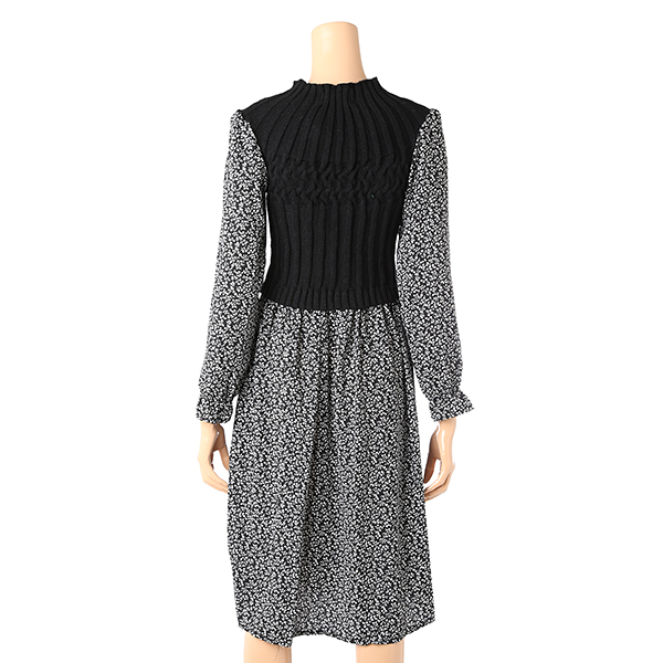 니트 짜임이 슬림한 디자인으로 꽃무늬 패턴 원피스와 일체형인