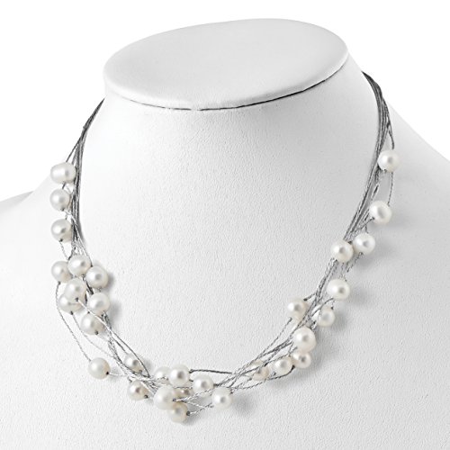 ICECARATS DESIGNER JEWELRY 925 STERLING SILVER RH 8 10MM WT RICE FRESHWATER CULTURED PEARL MULTI STRAND CHAIN NECKLACE