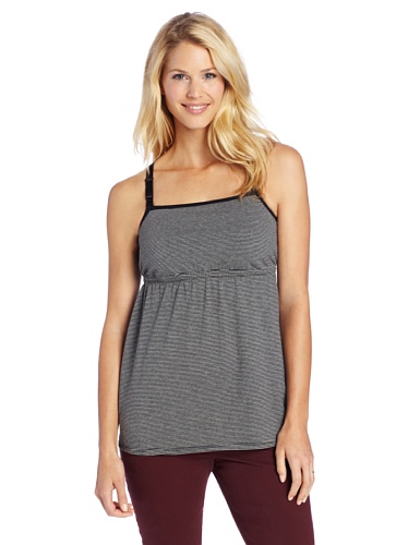 Empire-waist cami in stripes featuring built-in nursing bra with full inner sling for simple breastfeeding