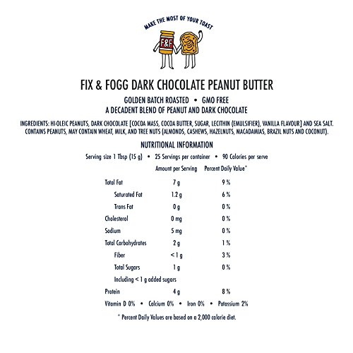 PURE AND DELICIOUS CHOCOLATE PEANUT BUTTER Each glass jar contains 13.2oz (375g) of the world’s best peanut butter. We use Argentinean Hi-oleic Peanuts, 62% dark chocolate, and a pinch of New Zealand Sea Salt. Our chocolate peanut butter spread is suitable for vegetarians and GMO-free. HANDMADE CHOCOLATE PEANUT BUTTER FROM NEW ZEALAND We make every jar of Fix Fogg premium Dark Chocolate peanut butter from start to finish in our small factory in Wellington, New Zealand. We’re completely hands-on throughout the entire process to ensure you get the best homemade peanut butter in the world. CAREFULLY CRAFTED BY PASSIONATE EXPERTS We make Fix Fogg Dark Chocolate peanut butter by blending our Super Crunchy peanut butter with rich 62% dark chocolate. It’s the perfect blend of rich dark chocolate and protein-rich peanut butter. PREMIUM ARGENTINEAN PEANUTS Fix Fogg Super Crunchy gourmet Dark Chocolate peanut butter is made from the finest quality Argentinean hi-oleic peanuts grown by the Lorenzati family. Try it on toasted brioche, dollop it on pancakes or ice cream, or eat it straight from the spoon to satisfy your cravings. THE ULTIMATE PEANUT BUTTER GIFT Every Fix Fogg Dark Chocolate peanut butter comes with a beautifully designed, reusable paper canister making it the perfect present for the peanut butter lovers in your life. Collect all 5! 0 |