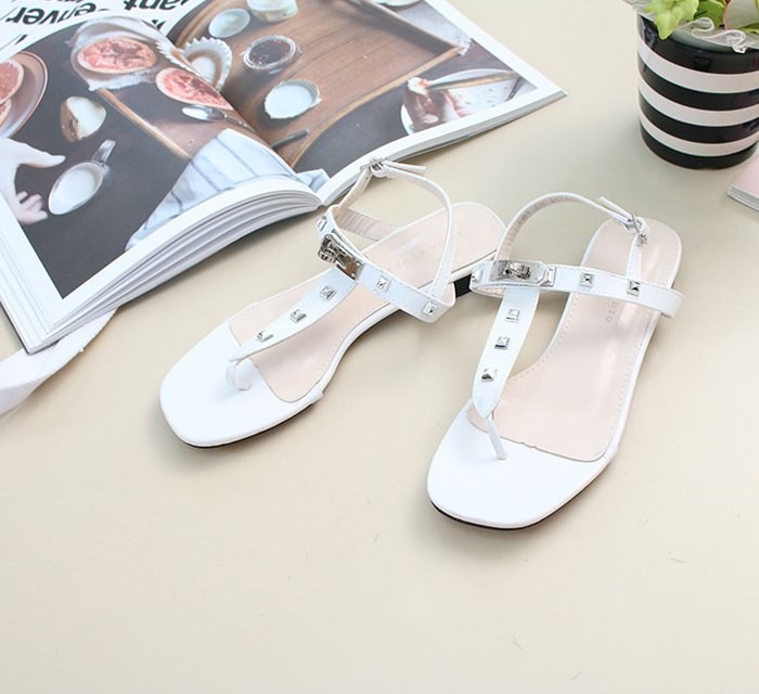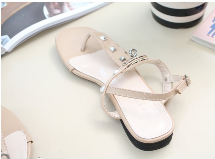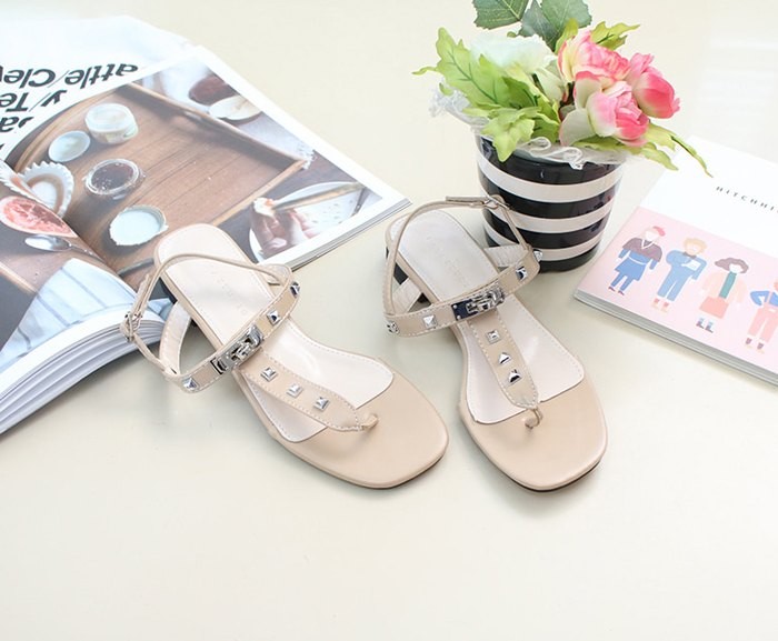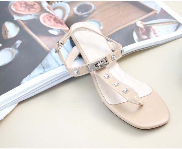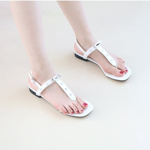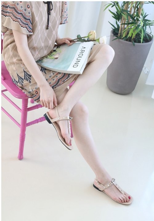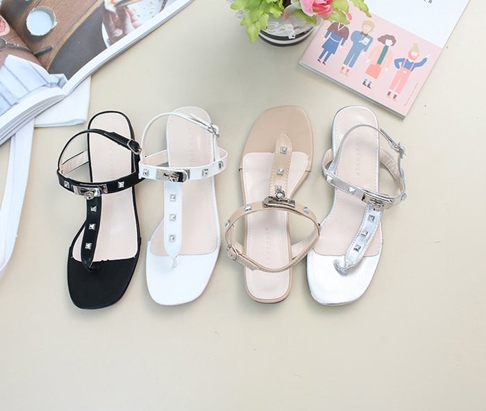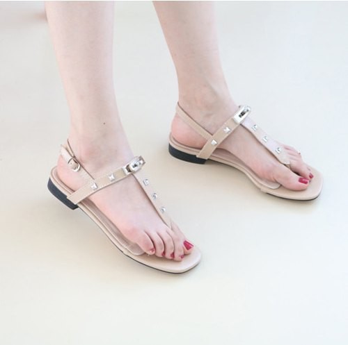 商品名:サンダル レディース ペタンコ トングサンダル Tストラップ スタッズ 2018 夏 ファッション 靴 婦人靴