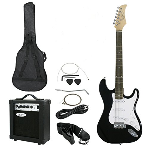 Studio : Smartxchoices Publisher : Smartxchoices Product Description FEATURES: 39" Full size electric guitar Metallic finish Body: hardwood Neck: maple wood with truss rod Finger board: rose wood Frets: 22 String Length: 25.59" / 650mm Pickups: single coil X3 Regulator volume X1, tone X2, 5 scale tone changer AMP SPECIFICATIONS: 10 watts Two band EQ Volume, base tone and treble control Headphone out ACCESSORIES: 1 x 39' electric gutiar 1 x 10watt amplifier 1 x 420D bag 1 x guitar strap 1 x guitar cable 1 x additional strings set 1#additional string 2 x pick 2 x allen key 1 x Tremolos rod 0
